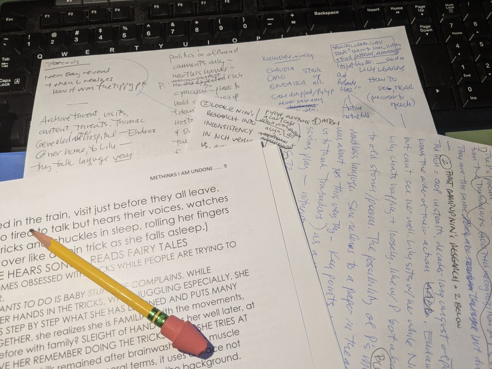 I started with about 80 double-spaced pages and now have around 470 pages of a first draft, with 20-30 pages of notes yet to go. It’s been a challenge trying to fit in from 30 to 120 minutes most days working on this thing which means just about more to me than anything but my family at this point.